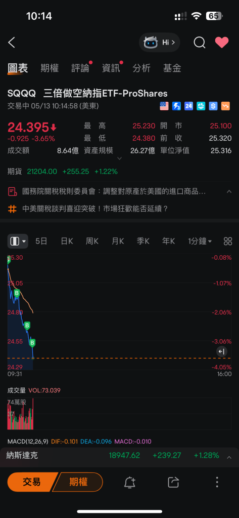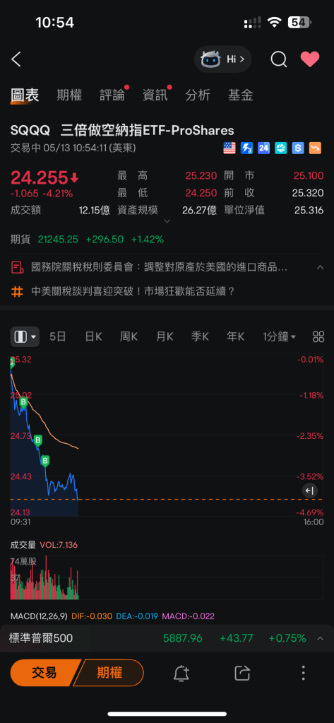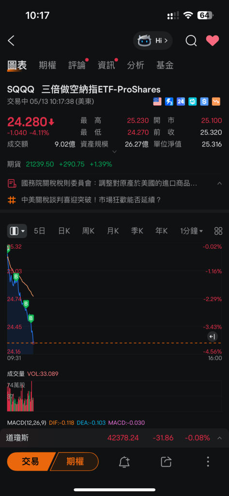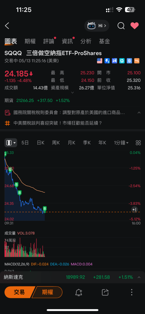 係咪比機會我,SQQQ 要生性呀,24.05 已經好過分