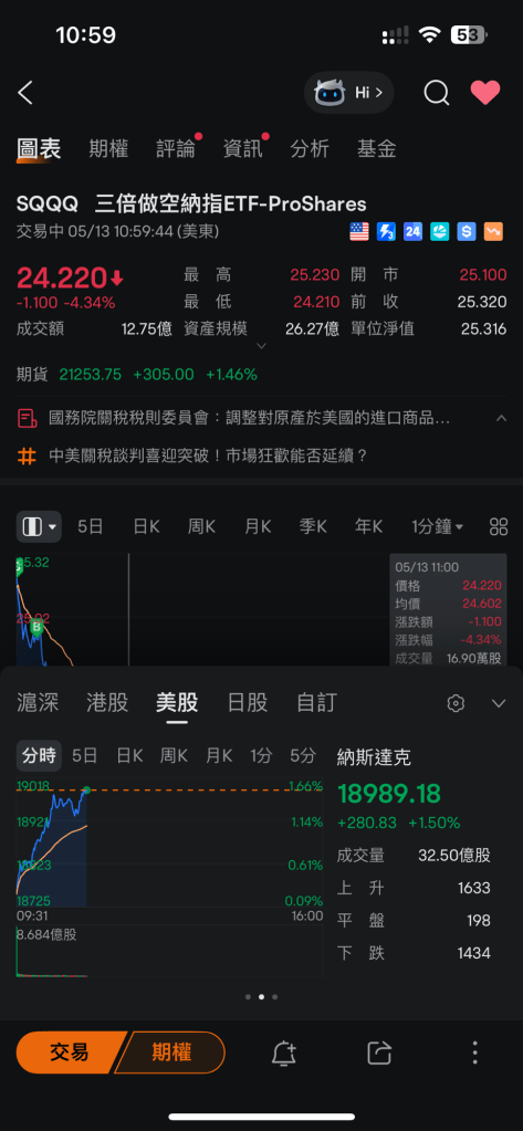 SQQQ低還可以低,仲可以再低,單邊市玩15日? 日日夜夜大升?咁憑乜嘢港股今日大跌。