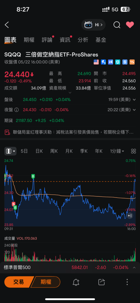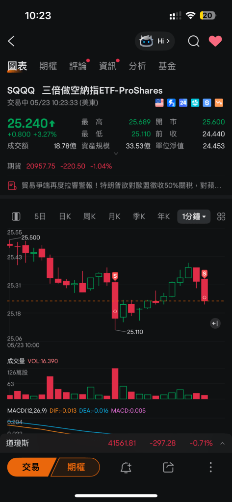 「SQQQ,我唔要你磨,我要你講清楚——跌,定唔跌?」