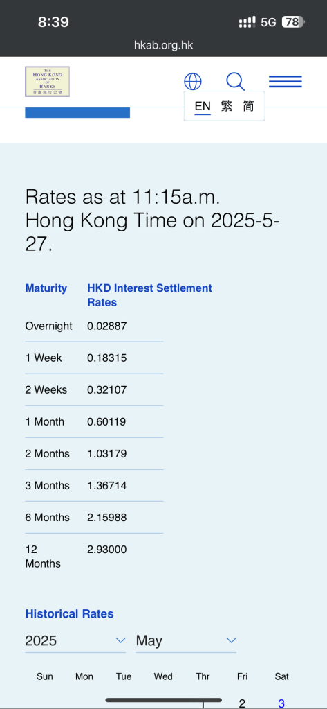 但市場數據已顯示:一個月HIBOR由5月中起見底反彈,約0.6%。