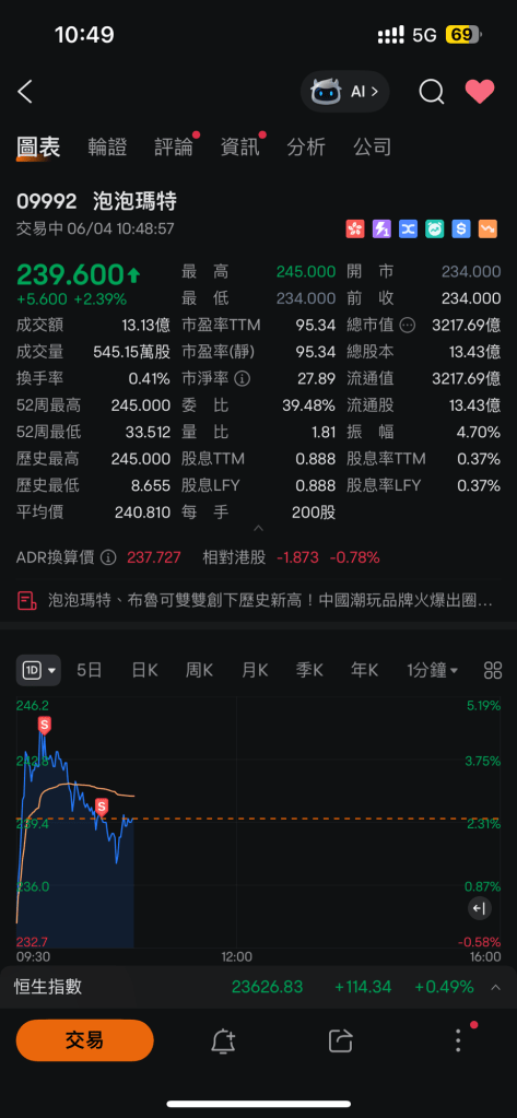 但係,9992(泡泡瑪特)突然爆上 $245。