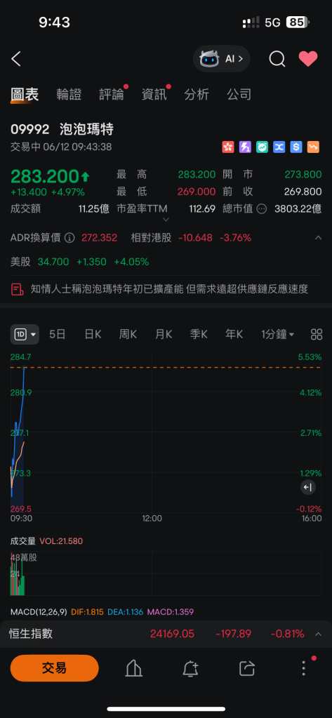 而今日,我終於望到轉勢第一下。