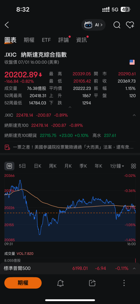 但美股方面,納指輕微回落,我少量對沖部位有回補,