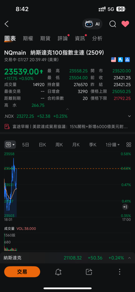 納指升到 23558,呢個數字好似一個死亡通知書,