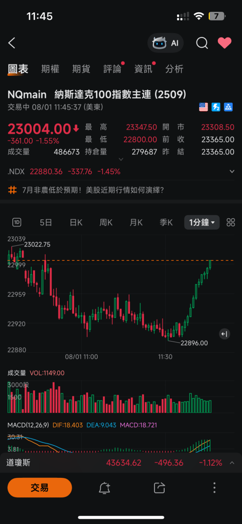 9992(泡泡瑪特):$243.2 納指期貨:22954,自歷史高位明顯回落